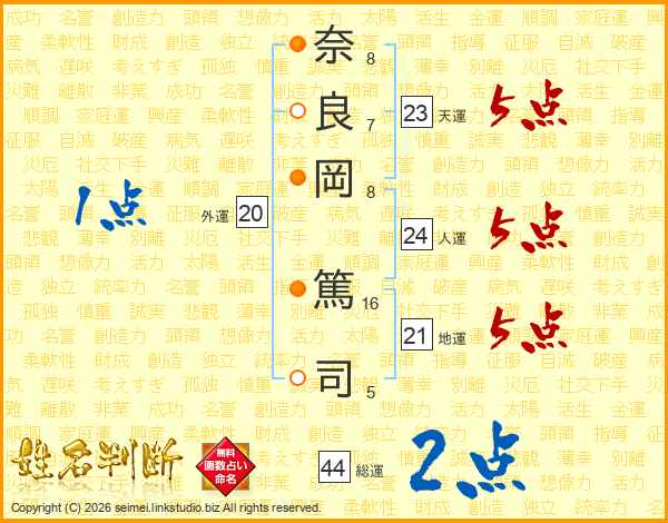 奈(8画)良(7画)岡(8画) 篤(16画)司(5画)