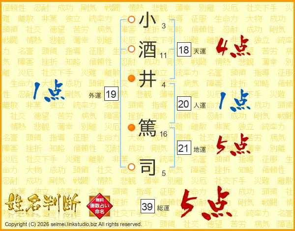 小(3画)酒(11画)井(4画) 篤(16画)司(5画)