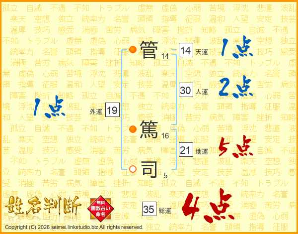 管篤司さんの総運は35画の4点!