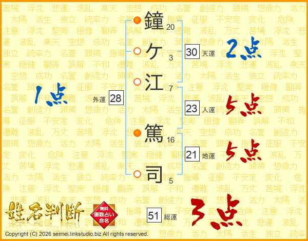 鐘ケ江篤司さんの総運は51画の3点!