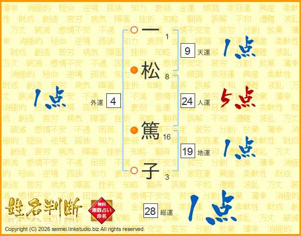 一(1画)松(8画) 篤(16画)子(3画)