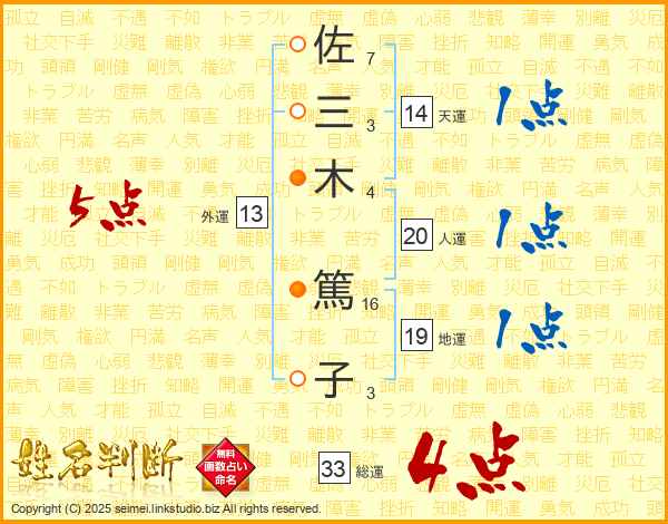 佐(7画)三(3画)木(4画) 篤(16画)子(3画)