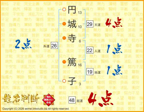 円(13画)城(10画)寺(6画) 篤(16画)子(3画)