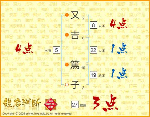 又吉篤子さんの総運は27画の3点!