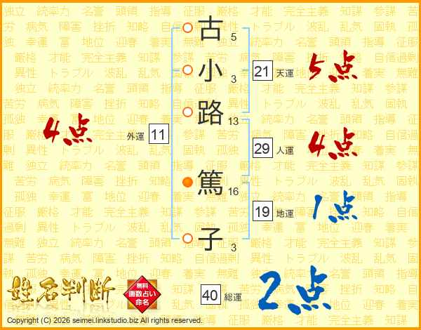 古(5画)小(3画)路(13画) 篤(16画)子(3画)