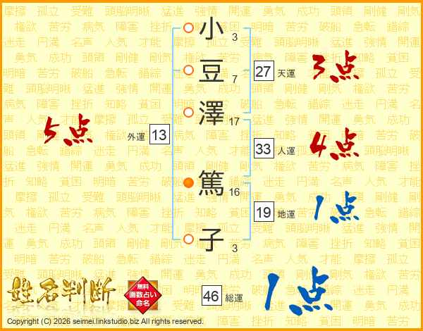 小豆澤篤子さんの総運は46画の1点!