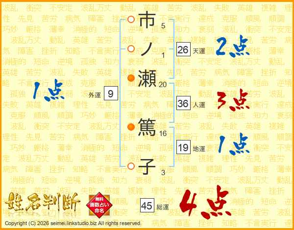 市ノ瀬篤子さんの総運は45画の4点!
