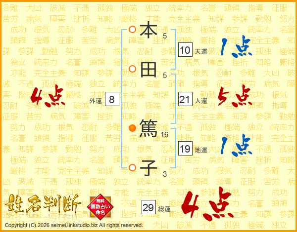 本(5画)田(5画) 篤(16画)子(3画)