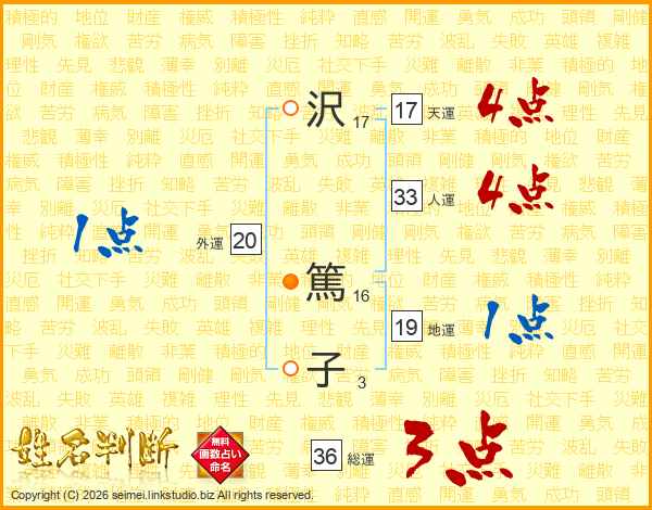沢(17画) 篤(16画)子(3画)