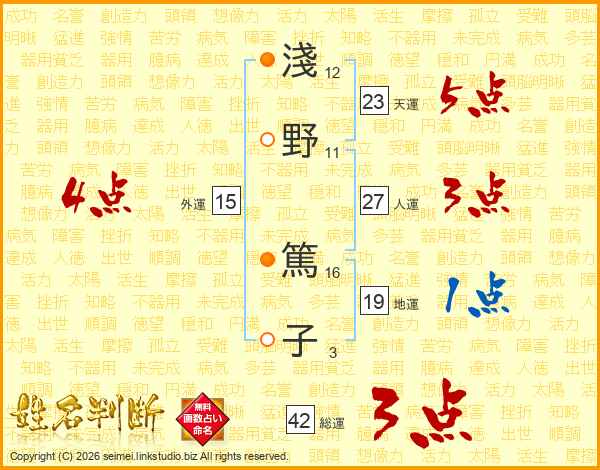 淺野篤子さんの天運は23画の5点!