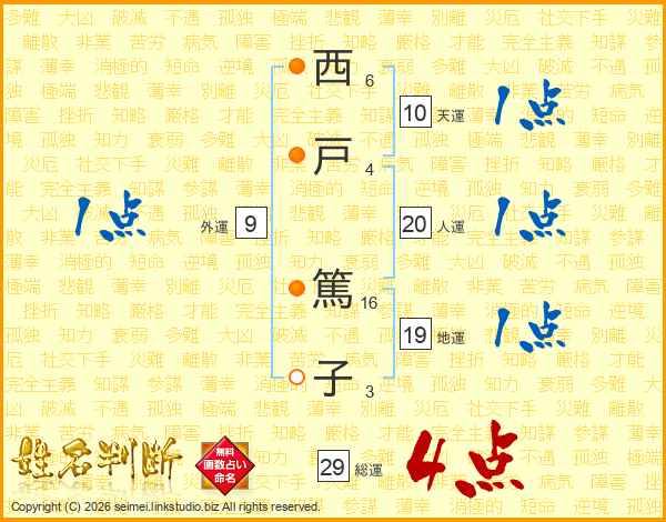 西戸篤子さんの総運は29画の4点!