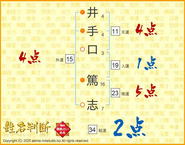 井(4画)手(4画)口(3画) 篤(16画)志(7画)