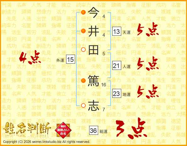 今(4画)井(4画)田(5画) 篤(16画)志(7画)