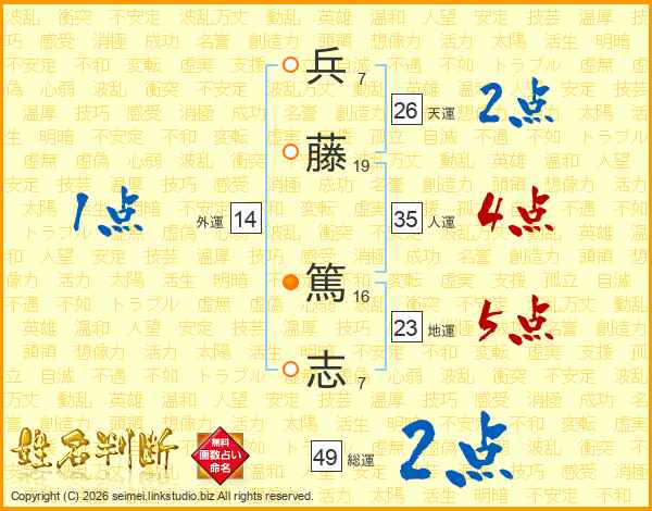 兵(7画)藤(19画) 篤(16画)志(7画)