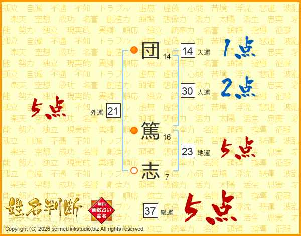 団(14画) 篤(16画)志(7画)