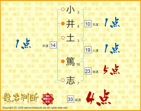 小(3画)井(4画)土(3画) 篤(16画)志(7画)