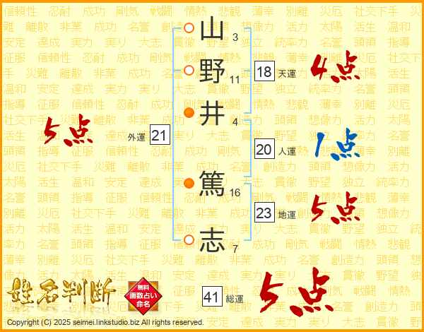山野井篤志さんの総運は41画の5点!