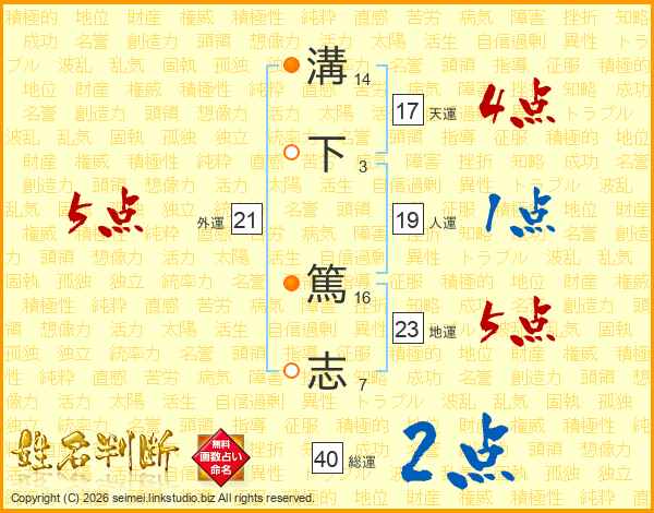 溝下篤志さんの総運は40画の2点!