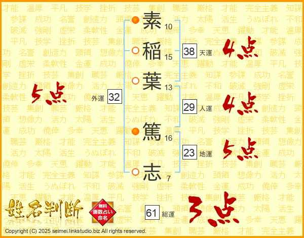 素稲葉篤志さんの総運は61画の3点!
