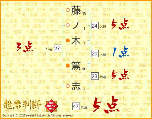 藤(19画)ノ(1画)木(4画) 篤(16画)志(7画)