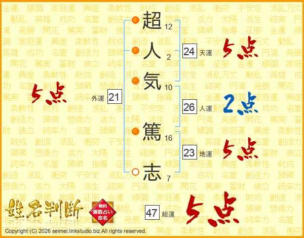 超人気篤志さんの総運は47画の5点!