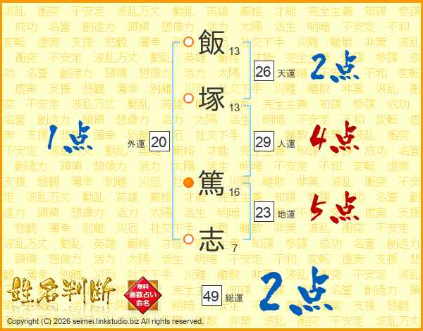飯塚篤志さんの天運は26画の2点!