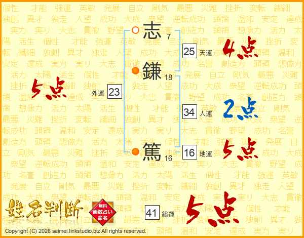 志鎌篤さんの総運は41画の5点!