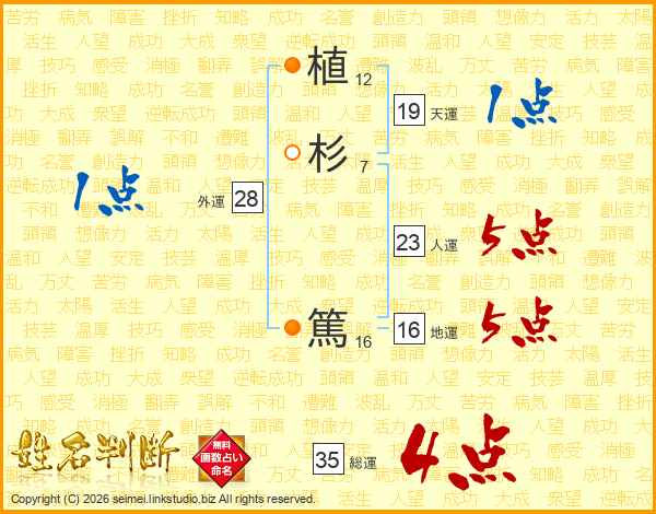 植杉篤さんの総運は35画の4点!