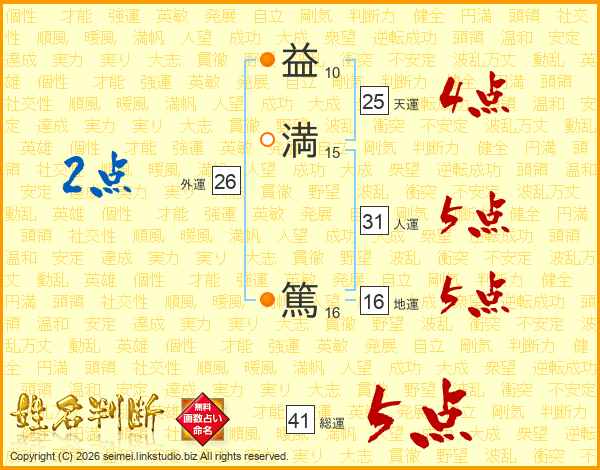 益満篤さんの総運は41画の5点!