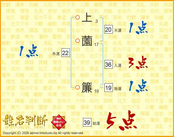 上薗簾さんの総運は39画の5点!