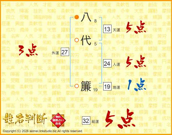 八代簾さんの総運は32画の5点!