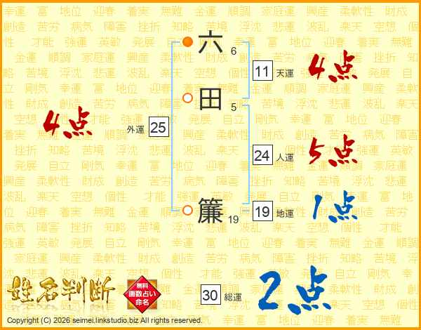 六田簾さんの天運は11画の4点!
