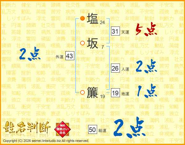 塩坂簾さんの総運は50画の2点!