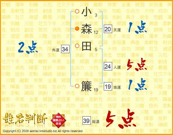 小森田簾さんの総運は39画の5点!