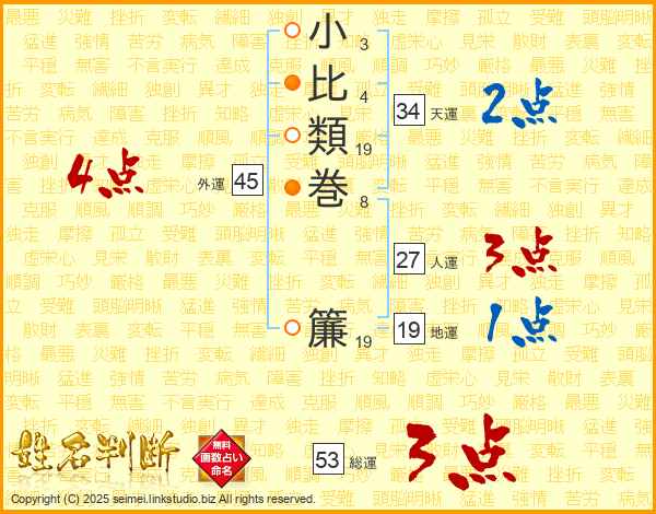 小比類巻簾さんの総運は53画の3点!