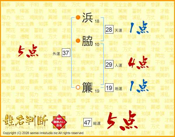 浜脇簾さんの総運は47画の5点!