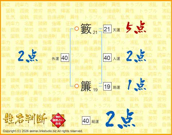 籔簾さんの人運は40画の2点!