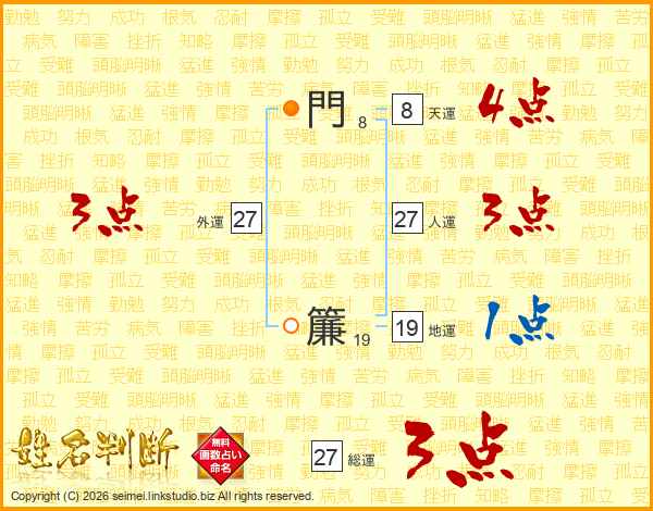 門簾さんの総運は27画の3点!