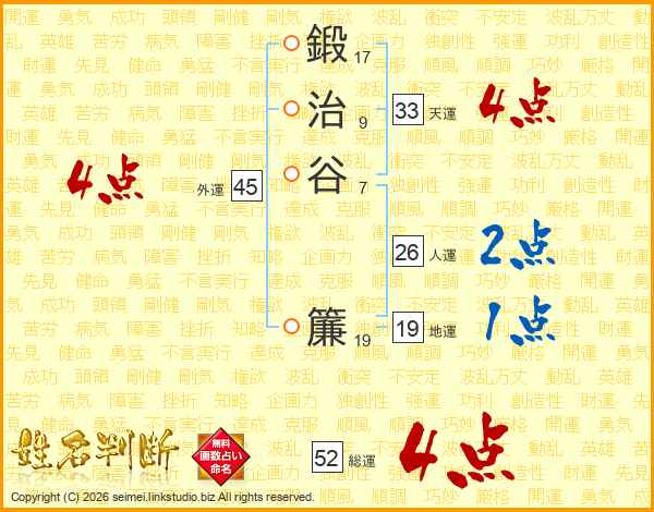 鍛治谷簾さんの総運は52画の4点!