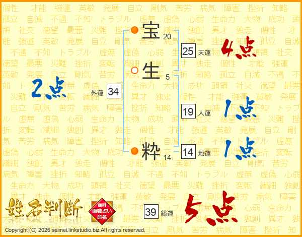 宝生粋さんの総運は39画の5点!