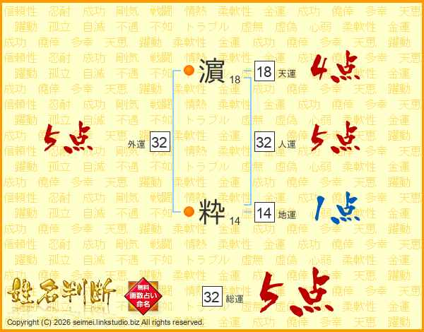 濵粋さんの人運は32画の5点!