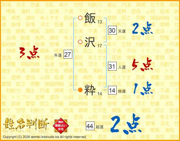 飯沢粋さんの人運は31画の5点!