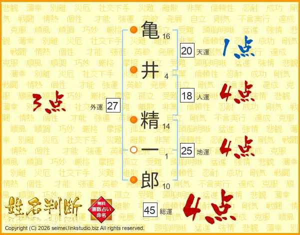 亀井精一郎さんの総運は45画の4点!