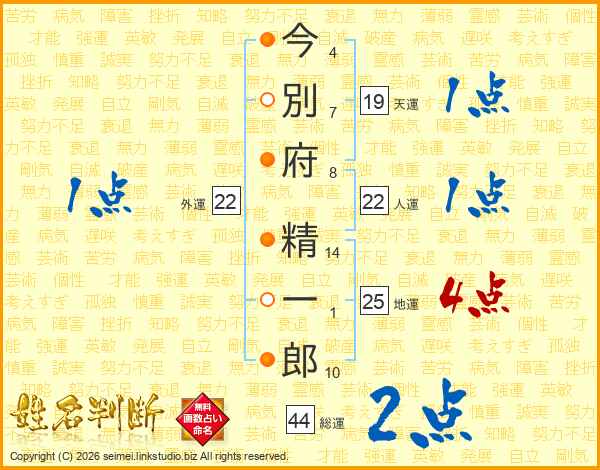 今別府精一郎さんの総運は44画の2点!