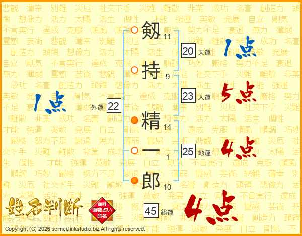 剱持精一郎さんの人運は23画の5点!