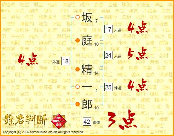坂庭精一郎さんの天運は17画の4点!