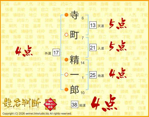 寺町精一郎さんの総運は38画の4点!