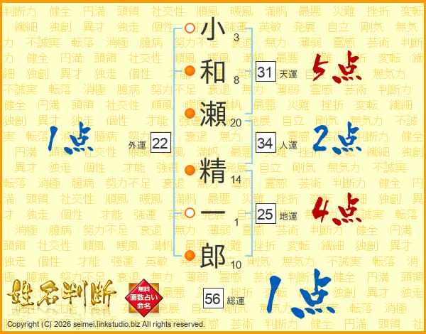 小和瀬精一郎さんの天運は31画の5点!