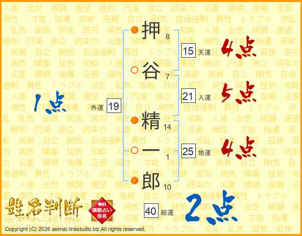 押(8画)谷(7画) 精(14画)一(1画)郎(10画)