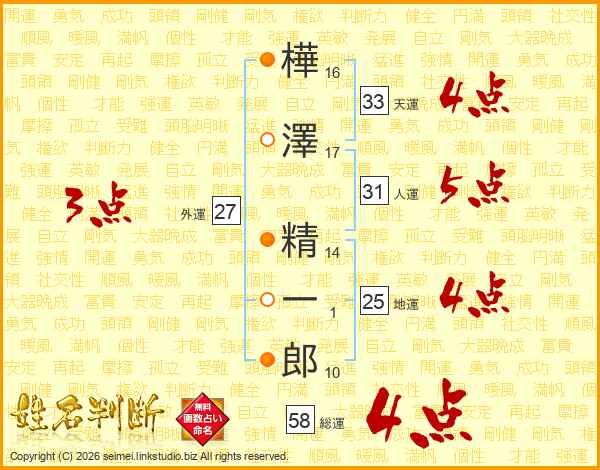 樺澤精一郎さんの総運は58画の4点!